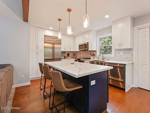 Welcome to your dream home in Jeffersontown! This beautifully maintained 5-bedroom, 3-bath ranch sits on a quiet cul-de-sac and blends comfort, style, and thoughtful upgrades. The main level showcases engineered hardwood floors throughout, a premium kitchen with quartz countertops, high-end appliances, and a spacious pantry, plus a primary bedroom with a private balcony, a spacious walk-in closet, and an en suite, along with three additional spacious bedrooms. The finished walk-out basement offers a large living room space, a private bedroom, and a full bath, making it the perfect spot for family movie nights, game days, or teenage retreat. Outside, enjoy two stamped concrete patios, a new deck, and a custom solar-powered tree house with motion-activated lighting and Bluetooth speakers, a unique retreat for all ages. Additional highlights include an extra-deep garage with abundant storage, along with recent upgrades such as a new dimensional shingle roof and 6" gutters for lasting peace of mind. This home is conveniently located near grocery stores, restaurants, the JTown Farmer's Market, and many of the amenities that make Jeffersontown such a vibrant community. Jeffersontown Zoned Schools including highly sought after Tully and Farmer Elementary. Only 1 mile from Tully!