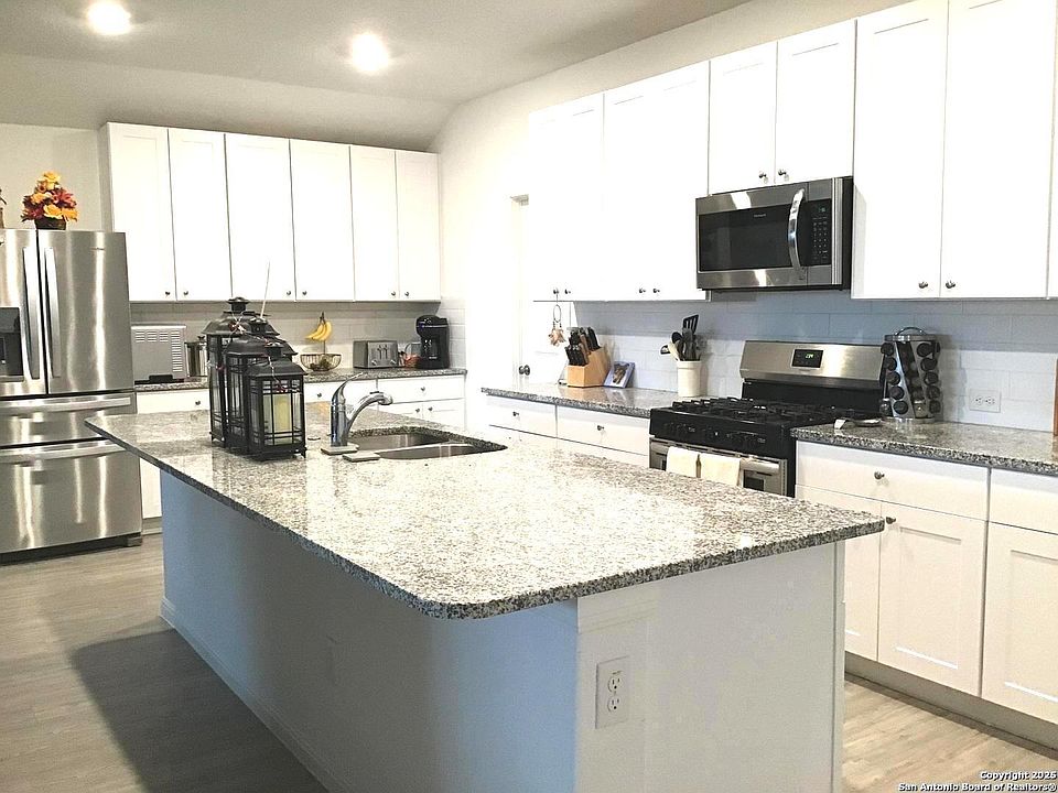* Exceptional 1 story beauty built in 2022 * Upgrades include, Sprinkler System, Water Softener AND SOLAR SCREENS at about $2,000 COST * Large kitchen island with Granite Counter Tops, Walk in pantry & ample cabinets * Split bed room arrangement * Barn doors in both bathrooms * Celling Fans * Garage door opener * Nice size covered patio * Minutes from RAFB, 1604 and I 10 * REFRIGERATOR, WASHER AND DRYER MAY REMAIN WITH AN ACCEPTABLE OFFER *
