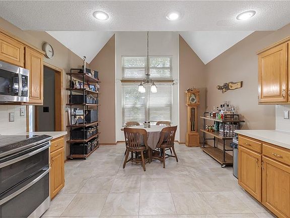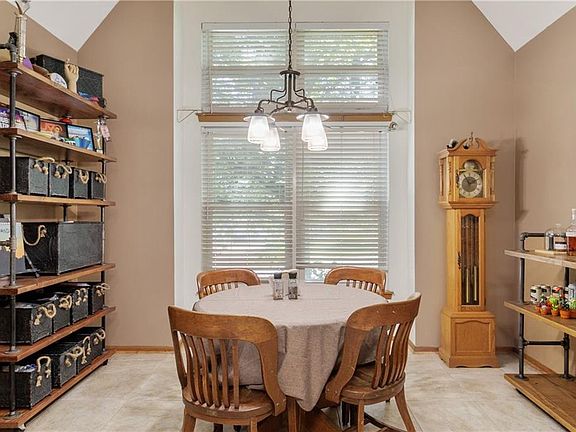 You will love this quiet oasis nestled in the trees and just minutes from the City! Sitting on almost an acre of land, this charming 1.5 story, 4 bedroom home is just a quick 10 minute drive from all of the excitement and convenience of The Legends area. You will love this quiet neighborhood with rolling hills and a private fishing lake for summer fun. Step into the expansive kitchen full of light with vaulted ceilings, ample cabinet and counter space, stainless appliances and tasteful tile flooring. The cozy living room offers a stone wood burning fireplace and access to the covered deck, perfect for enjoying a cup of coffee and watching the rain roll in. The main level master offers convenience and serenity complete with its own private deck with peaceful views of the yard. Upstairs, three additional bedrooms provide ample space for family or guests. Outside, a large shed beckons the hobbyist with room for all the toys and tinkering you could need while a covered grilling area promises delightful outdoor entertainment. Don't miss the 8ft garage doors perfect for bigger trucks and SUV's and the newer driveway. With a new roof and gutters, easy-care vinyl siding, replacement windows and young HVAC, this home epitomizes both comfort and convenience and is ready for it's new owner to make it their own. Come and take a look, you will be glad you did!