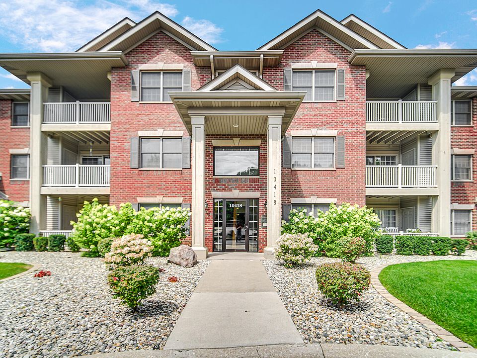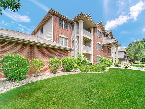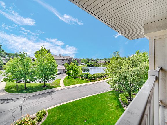 Welcome to this 3rd floor condo across from a beautiful pond and located steps away from the bike trails. This 2-bedroom 2-bathroom condo is located in a Maintenace free building that is equipped with an elevator. This condo also features an open concept, as well as a split floor plan. The large primary bedroom features a walk-in closet and a full bathroom. You can walk through your large living room that features vaulted ceilings and sit on your balcony and enjoy the amazing view of the pond. The kitchen opens up to a dinette area as well as a separate area for your spacious laundry room. You will have a 1 car garage with space for extra storage. This building also allows pets up to 25 pounds. This home is located close to restaurants and shopping. Don't miss out on this beautiful condo. It won't last long,