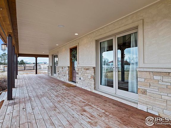 Not often does a property of this caliber come to market. Perfect for the discerning horse owner, hobby farmer or someone seeking peace and quiet that only the country can offer. As you come down the private road to the gated property, you will be awestruck by this incredible Custom home designed and built by the current owner. Situated on 4.5 fully fenced acres with NO HOA restrictions and NO covenants, this classic ranch house offers everything you are looking for in a farm/ranch home. Covered wrap around porch to enjoy every world class sunrise and sunset, beautiful kitchen with hickory cabinets, Tier 4 granite and induction cooktop. Primary bedroom with dormer windows facing longs peak and luxury 5 piece bath including leather finished granite counter tops. Finished basement with steam shower and ready for a 4th bedroom if needed. Sonos central home audio system. Detached heated 2 car garage offers a convenient 3/4 bath, office and den for the dream home office. Mini-split heat and air conditioning in office and bath make it home away from home. There is a 25x25 Quonset/Shop with separately metered 200 AMP service and 8'x7' doors perfect for hobbies and extra storage. Horse facilities include 2 oversized pens with 12x12 loafing sheds, outdoor area/training area with hydrant and power, cross-fenced pasture and additional pasture that can provide drylands hay crop or grazing. Master landscape plan by Lindgren Landscape. Additional out building or shop can be built on the property.