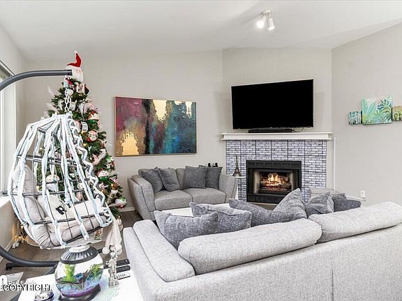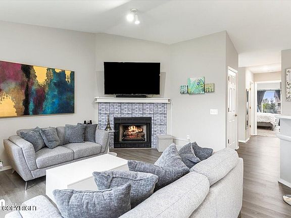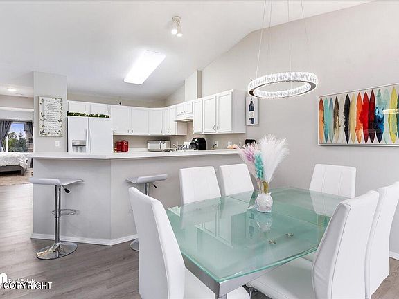 The garage has been tastefully transformed into a versatile space, featuring elegant ceramic tile and a wet bar, perfect for a gym and entertaining area, while still retaining its original functionality.Enjoy stunning Northern Lights views from your private balcony. The backyard opens up to an adjacent community area, providing ample outdoor space.With new flooring and open layout this property offers a fresh and inviting atmosphere. Just minutes away from the Anchorage Golf Course, grocery stores, parks, Hanshew Middle School, Dimond blvd and everything southside has to offer, this home combines convenience and comfort in a prime location. Don't miss the opportunity to make this your new home!