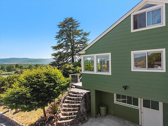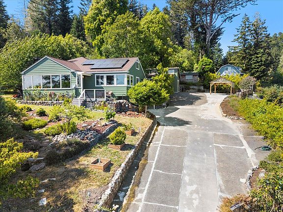 Come fall in love with this one-of-a-kind home, tucked away on just over half an acre with jaw-dropping views of Fortuna, the Eel River Valley, and even a sneak peek of the Ferndale Christmas tree. Step inside to a warm 3-bedroom, 2-bathroom main floor, where a sun-filled kitchen with a cozy eat-in dining area, a big pantry, and fresh LVP flooring steals the show, alongside gorgeous, newly refinished real oak floors. The primary bedroom feels like a personal spa with its own sauna, roomy bathroom, and walk-in shower. Upstairs, you'll find a flexible 2-bedroom, 1-bathroom suite with a handy kitchenette, its own entrance, and tons of closet space, perfect for guests or family. The semi-finished basement has laundry hookups and plenty of storage for all your extras. Huge picture windows and decks on every side frame the wooded backyard and sparkling city lights, with a hot tub off the back deck begging for starry-night soaks. Outside, a thriving garden bursts with lemons, raspberries, blackberries, plums, apples, and cherries that the birds love too. There's also a charming tiny house perched at the top of the lot, a woodshed, a 1-car garage/shop, two carports, and plenty of parking space. Plus, it's eco-friendly with a 5kW 18-panel solar system tied to the grid, with 12 years left on a grandfathered NEM-2 contract. This place feels like a private escape but is just minutes from town,a perfect blend of seclusion and convenience. You have to see it to believe it! Call to schedule a tour and make this dream home yours!