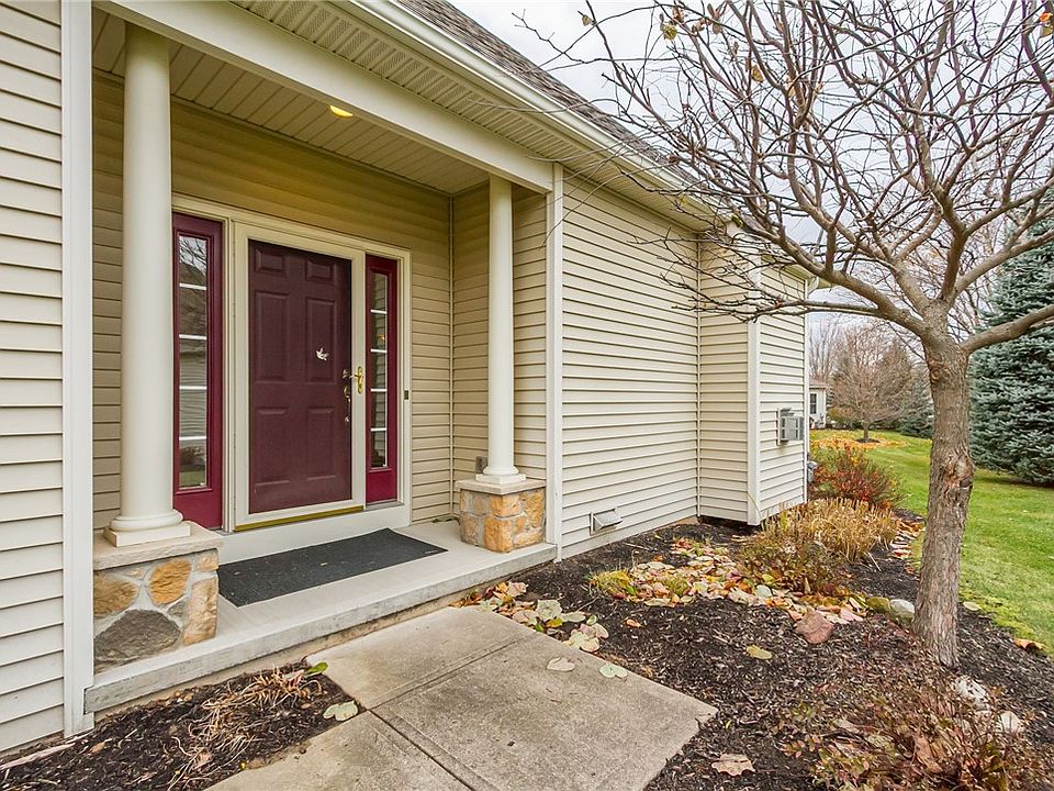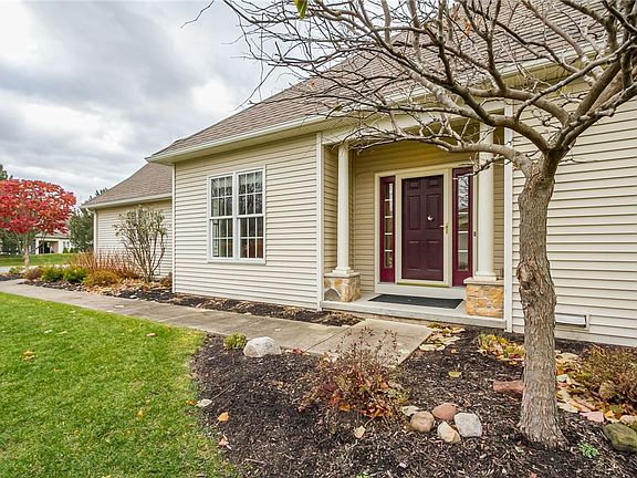 Beautiful 2-bedroom ranch townhome now available! Step into a welcoming foyer with stunning Brazilian flooring and an open floor plan perfect for modern living. The spacious family room features a cozy gas fireplace and flows seamlessly into the cook’s kitchen, complete with granite countertops and a bright, cheerful eat-in area that opens to the covered porch.As an end unit, this home offers exceptional privacy and abundant green space. The primary suite includes a walk-in closet, a spa-like bath, and private access to the patio—an ideal spot for morning coffee. The second bedroom and full bath are generously sized and filled with natural light. Additional highlights include first-floor laundry and a huge lower level ready to be finished for additional square footage. Delayed negotiations until 11/25 at 10am.
