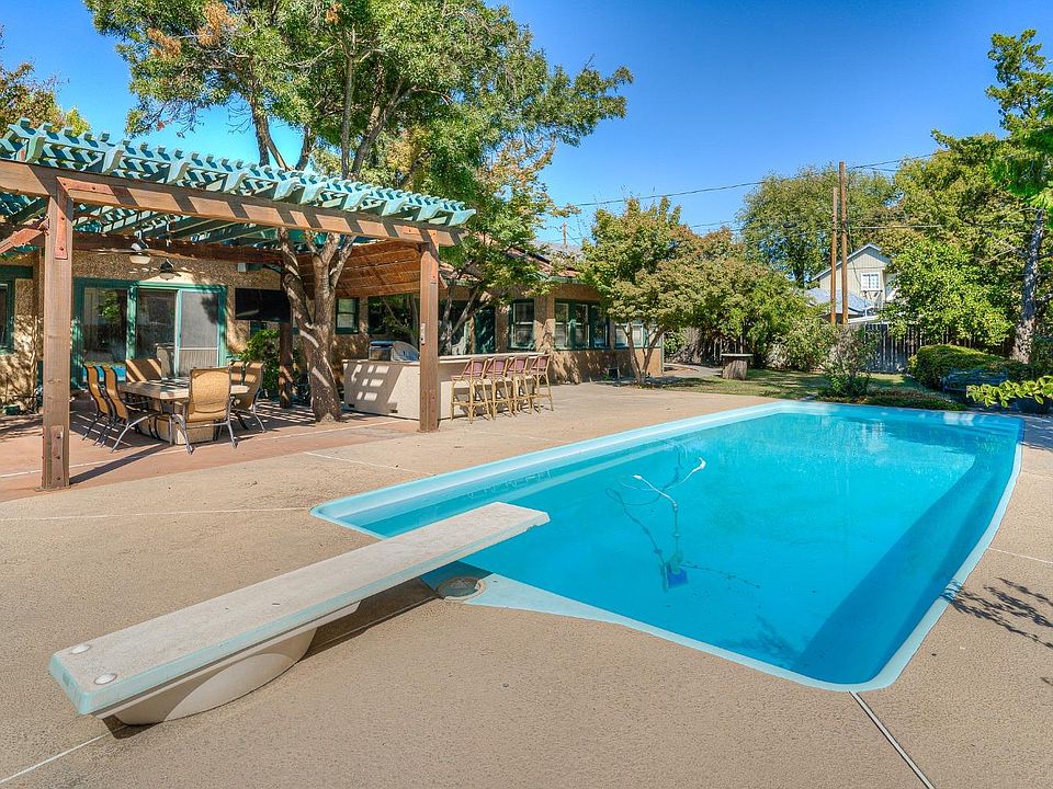 1920's Charming Estate in the heart of town! Craftsman's appeal with a dash of Suite Retreat, a sprinkle of entertainer's paradise, and a slice of heaven! Original hardwood flooring, fireplace with custom tiles, built in cabinetry in the living room and dining room, era specific ceiling border trim and wood floor bordered inlay in the front office space! The kitchen has stainless steel appliances and tile countertops. The Master retreat is a private section with plenty of area to relax and rejuvenate, whether it's by the fire, cozied up on the couch or soaking in your massive jet tub! There are exquisite views from every room of this home to take in all the beautiful surrounds of the exterior landscape! The backyard is ready to host a Sunday BBQ or keep it to yourself as a private oasis! Fiberglass pool, outdoor kitchen with stainless steel grill, two top burner, fridge and drawers! The Custom-Built Gazebo is gorgeous with large wood beams, steel, ceiling fans and mounted TV so you won't miss a play! Plenty of Orange, Lemon and Pomegranate trees to keep your Vitamin C levels up and a huge garden area to complete your homestead experience. Large double lot, pull thru garage for 2 cars including alley access and Owned Solar! Save on PG&E and put it towards your house!