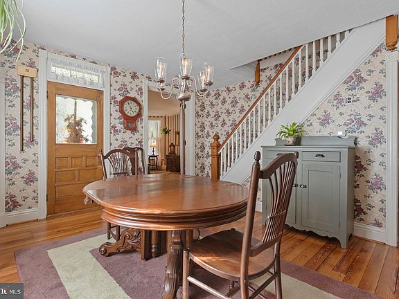 Step back in time with modern comforts in this beautifully maintained late 1800 3-bedroom, 2-bath Victorian beauty. From the inviting wrap-around porch to the timeless hardwood floors and doors, this home is filled with character and warmth. Inside you'll find a formal living room and dining room, a spacious family room with a brick gas fireplace and wet bar, office, Florida room and a convenient, spacious mudroom/ laundry. Attic and basement available for storage. The private outdoor space is a true retreat: a patio overlooking the in-ground pool, a 2-car garage with workshop and a loft for storage. An original smokehouse is now repurposed as a small storage shed. Additional patio at the back of the yard is currently used as a small basketball court. The entire yard is fenced and has mature landscaping to provide privacy. This rare find blends historic charm with thoughtful updates- perfect for entertaining and making memories.