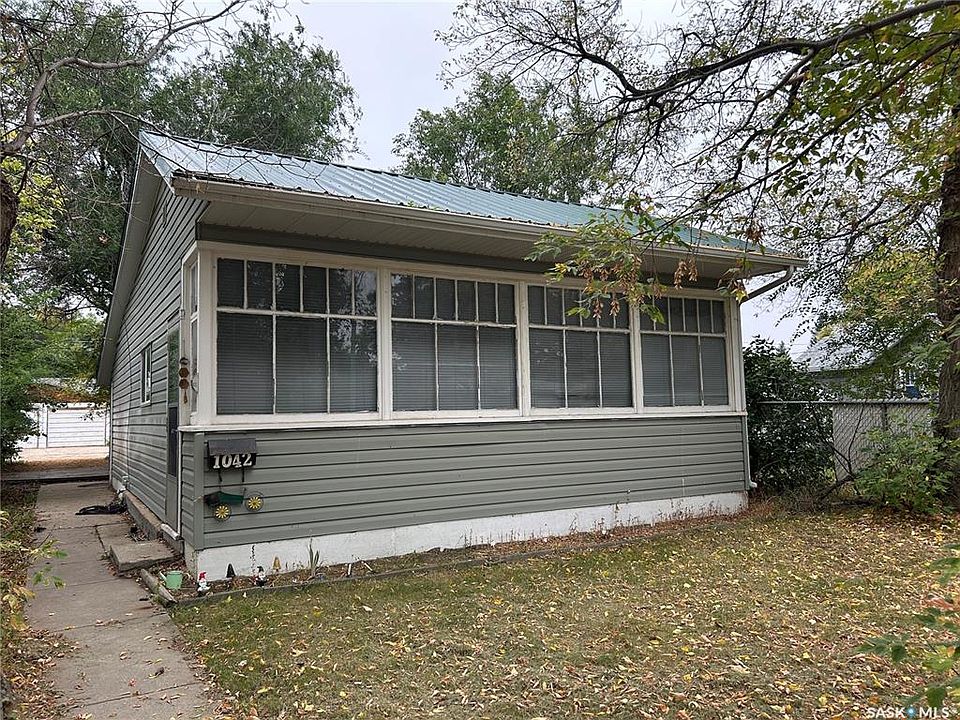 Cute & Affordable!! This is the perfect home to start your home owners experience or to add to your revenue portfolio. At the front is a south facing glassed in veranda to enjoy your coffee. Once you enter the home there is a nice sized living room with the Primary Bedroom just adjacent. Moving towards the back is a kitchen that has seen a few updates along with a 3pc bathroom and a smaller bedroom...perfect for a child bedroom or could be used as an office. The backyard is mature and partially fenced with shrubs, trees, a deck and parking in the back also!! Some extras this home has is: HE furnace, updated windows, metal roof. If you are looking for an affordable home with just enough space this is one to view!!
