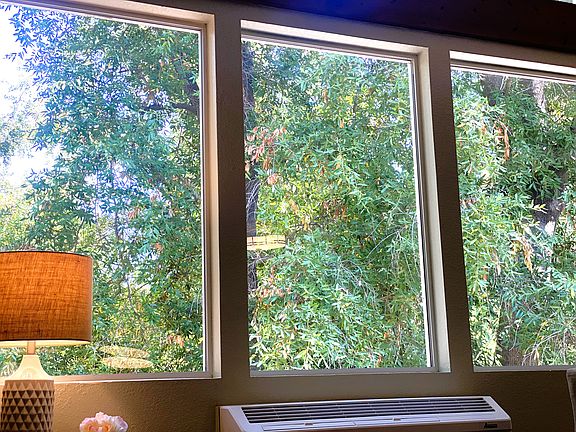 This peaceful and private unit offers stunning views of green trees and sits above a creek. Green trees are visible from every window and the spacious wood deck. Inside, enjoy pitched ceilings with wood beams and gas fireplace in a thoughtfully designed layout.