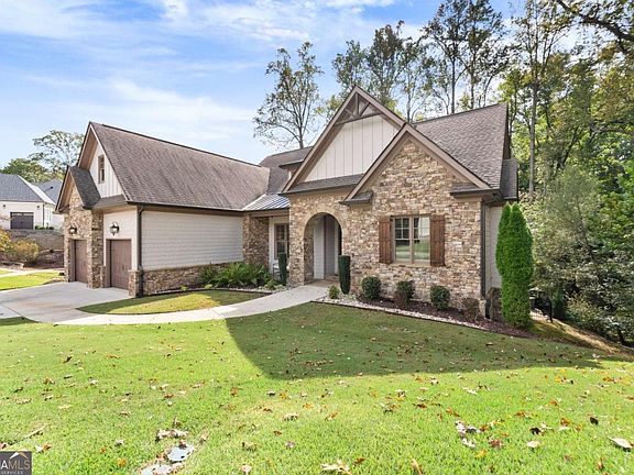 Exceptional in-town location, absolutely move-in ready, and square footage to continue growing. This comfortable luxury abode just feels like "home." Located in the heart of downtown Gainesville, The Gardens offer neatly landscaped craftsman homes, a resort-like pool and pavilion, and walkability to multiple public parks. Upon entering, you're greeted by warm, yet modern, interiors and upscale finishes. The floorplan is perfect for a large crew with a primary suite on main, guests and littles upstairs, and the best teen ensuite and hangout zone on the finished terrace level. Additional thoughtful spaces include a dedicated office, spacious laundry work room, a butler's pantry, two half baths, oversized closets everywhere, formal and informal dining, and a large terrace level kitchenette to name a few. Need tons of storage space? Enjoy a massive unfinished utility area with a separate boat or golf cart garage! Take the entertainment outside to the main level deck with a stone fireplace, the lower patio spaces, fenced backyard, and down to the creek-side firepit. Or meander a few steps to the sparkling community pool, cabana house and small putting green. You will love the location just seconds from Gainesville Square, Breanu, Wilshire, Wessel, and Longwood parks, shopping, dining, and entertainment.