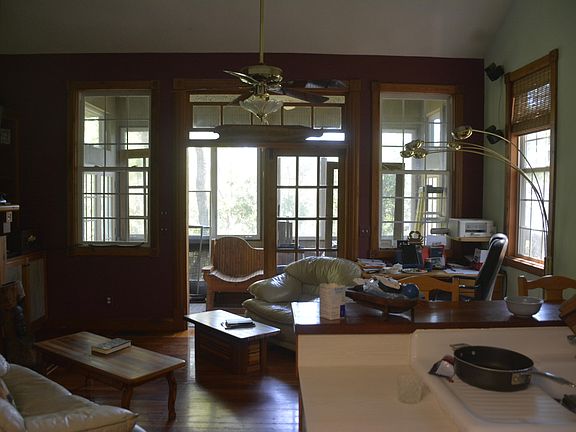 Outstanding small cottage built by Edisto's Premier Cabinet maker for himself. Heart pine floors with rock maple and cherry inlay. Front door was made in 1790 from plantation in Augusta Ga. with rosettes .Kitchen floor was salvaged from same house. Kitchen sides are English Yewwood, drawers and frames are heart pine. The crown molding and baseboards are cherry wood. The bedrooms floor and baseboards are red oak, doors to back porch are cypress with mostly 150 yr old glass. 2 bedrooms with loft, great living area with fireplace, with covered porch. The woodwork is unbelievable throughout house. Woodworking shop under house. Outside covered sitting area. 1.5 acres. located just minutes from beach. Lot has plenty of hardwoods, grapefruit trees & exotic plants. Owner put his heart in this one