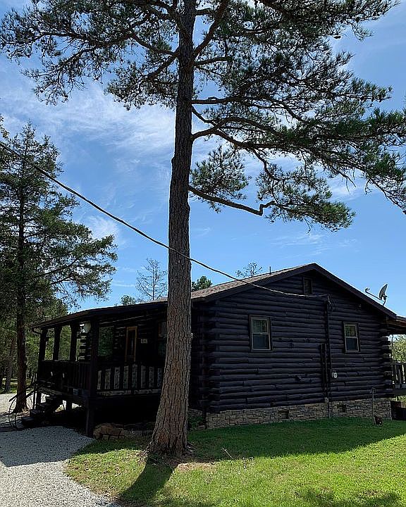 Current vacation rental on VRBO/Airbnb. Cozy cabin nestled along the banks of the Little St. Francois River. Unmatchable landscape with natural rock formations lending to a picture perfect bon fire backdrop. Pine trees, shady cedar grove, bluffs and river bank for exploring. Log home with a large covered front porch and oversized back covered porch perfect for lounging with a cup of coffee and a good book! *** NEW Hot tub***-***NEW 2020 carport with heated/AC additional 350 sq ft space for office/bunk house/etc. *** 2 bedrooms/1 bath ***open floor plan*** Deer and turkey pass right through the yard on a daily basis!!!! Currently generates 35K a year as an established 5 star Airbnb/Vacation Rental. Sits on a private road with a circle drive. This property is a rare find. Zillow estimate price does not include new construction on the property or updates. Due to the cash flow of this property asking price is firm. Comes fully furnished ready to resume airbnb/vrbo bookings.