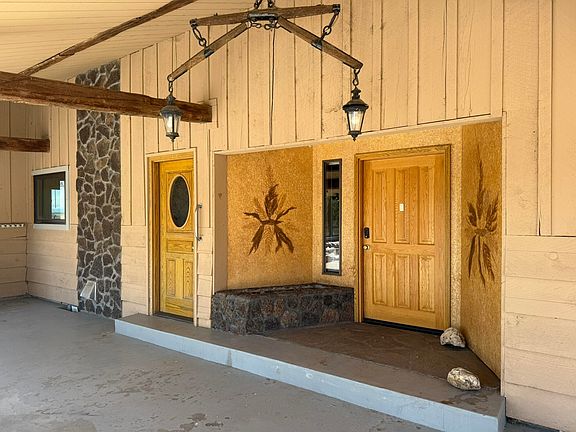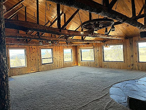 Views of Mt Jefferson from the Great Room, custom vaulted ceilings with extensive exposed wood beams, gas fireplace, rustic rock work, built in bar space, in ground pool and irrigation water. Windows have recently been replaced. Update this beautiful home or keep its unique ambiance. Barn with a couple stalls already in place. Space available to build additional shop. Irrigation equipment onsite included in unknown condition. Buyer to do their own due diligence on all aspects of the property. Property is being sold in as-is condition.
