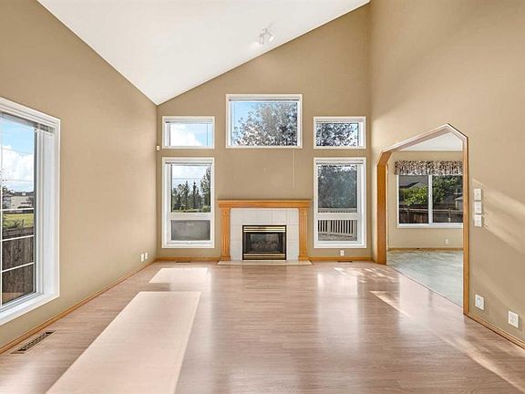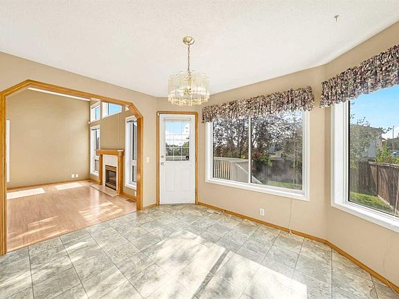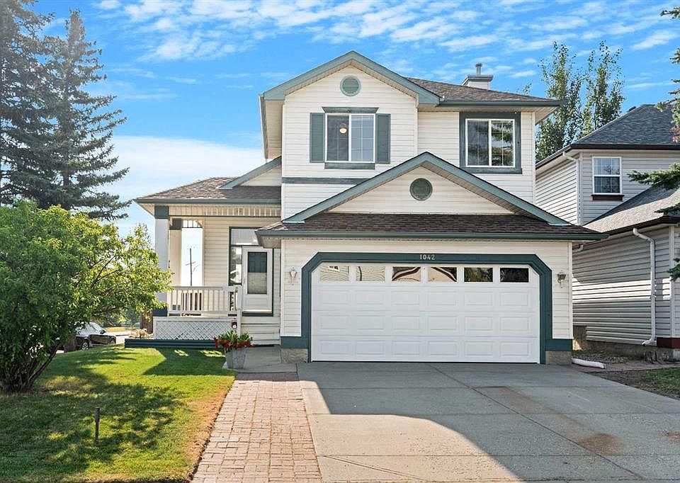 Corner Lot Home in Harvest Hills! Offering nearly 2,000 sq.ft. of total developed living space, this inviting home welcomes you through the front porch and into a bright foyer with soaring vaulted ceilings that extend into the spacious Living Room. With its 17’7” ceiling and cozy gas fireplace, this room feels open and airy, perfect for both everyday living and entertaining. The Living Room connects through a double door frame into the open Dining area and white Kitchen, designed with a practical layout, centre island and ample cabinets, and patio doors leading to the deck. Upstairs you’ll find three bedrooms, including the spacious Primary with a walk-in closet and cheater door to the 4-piece full bath. Two additional well-sized bedrooms complete this level. The basement adds to your living space with a large finished Rec Room and plenty of storage. Step outside to enjoy the fully fenced and landscaped south-east facing backyard, featuring a patio, mature trees, fire-pit, and convenient back-lane access. Additional comfort comes with central A/C, a newer roof (2022), and a double attached garage with a newer garage door. All of this in a prime location—steps to the bus stop and Harvest Hills Park, close to Harvest Hills Crossing and The District shopping centres, with quick access to Deerfoot Trail, Stoney Trail, Harvest Hills Boulevard, and Beddington Trail. A bright and comfortable home in a family-friendly community, ready to welcome its next owners.