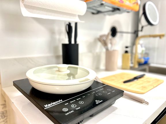 Queen bedFully stocked kitchenetteSmall courtyardWasher and dryerSplit unit with heater