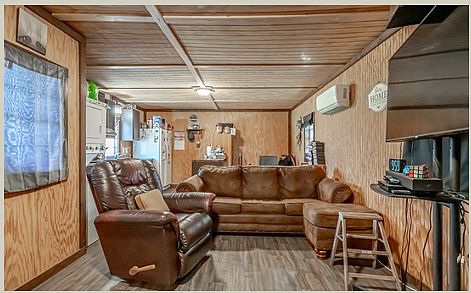This cozy one-bedroom cottage features an open floorplan with full kitchen and appliances (refrigerator, range, and all-in-one washer/dryer) and living area combined. The bedroom features a barn-style sliding door and easy access to the newly remodeled bathroom. It is heated and cooled by a mini split system.