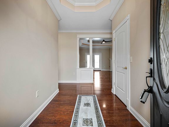 This one owner, custom built all brick ranch home sits upon one of the best lots in Kings Gate... 3 acres, farm & pond views, cul-du-sac location and ideal for a future pool! Once you walk in this sprawling home you'll instantly fall in love with the quality & the details throughout... ample crown molding, trey ceilings, built ins & more! The main level features 3 bedrooms & a formal office which can double as a bedroom because it has a closet & window + built ins! The living room has a gas log fireplace & built ins. The kitchen is spacious w/LOADS of storage, stainless appliances & a breakfast bar & breakfast room. The primary ensuite features 3 walk in closets w/custom shelving, jetted tub, 2 sinks, sep. water closet, 2 linen closets, heated floors & a tiled walk in shower sure to impress! Laundry room is located handy to primary bedroom & garage. The lower level has recently been finished to include 2-3 additional living spaces, 5th BR, 3rd full BA, mechanical room plus 2 more unfinished storage rooms. There is even more storage UNDER the main level garage in a storm shelter space. This neighborhood has deed restrictions but no HOA. New roof shingles 10/23. 48 hour kick out.