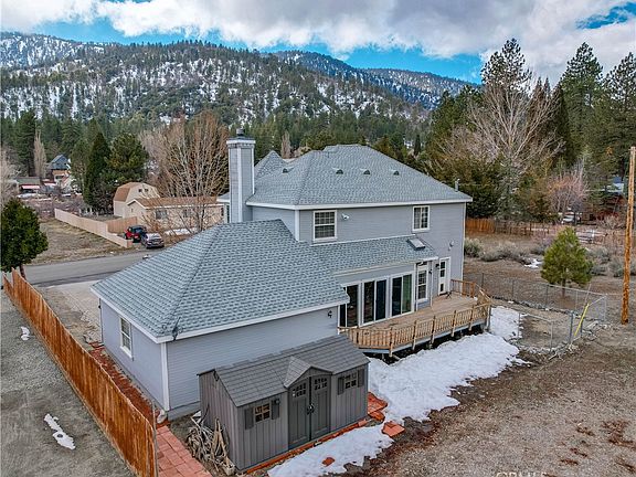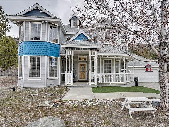 Your Castle awaits!! Check out this 3 bedroom 3 bathroom Victorian style property high in the San Gabriel Mountains in picturesque Wrightwood! Upgrades and views abound...some of the best views of the famous snow filled Blue Ridge Mountain range in the village! Inside, a family friendly floor plan, large amounts of natural light, with new vinyl plank flooring, a well appointed upgraded kitchen with granite counters, stainless appliances and plenty of cupboards for the appointed chef! Large picture window over the sink makes doing the dishes a pleasure and brings in lots of natural light. Living room centerpiece is the fireplace with stone inlay and impressive mantle. Nifty breakfast nook for the nine to five and a formal dining area as well give options for entertaining during the holidays. Arizona sun-room off breakfast area is awesome for flex space, potted plants in the winter or any season or a home gym. Upstairs to the three bedrooms and large primary suite with southern exposure, plenty of closet space including a walk in for the primary, large soaker tub, dual vanity and turn key conditions. Other features inside include a whole house fan, programmable window fans, extra storage above the 2 car garage, pantry area in kitchen, crown molding and so much more! Outside, lots of southern exposure and sunlight, cozy front porch, paver driveway (great for melting snow), ornate features and dormers, new storage shed, brand new septic tank and 360 degree views!! Rear deck for the BBQ and side gated area for the pups. New roof adds peace of mind...large 2 car garage with pull down ladder and RV or trailer parking as well! Come see the views, turn key conditions and all mountain living has to offer with this one of a kind Victorian in the Forest!