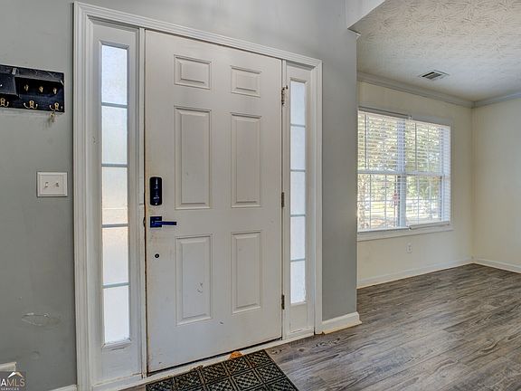 This inviting two-story home is designed with functionalty in mind offering three bedrooms and two full baths, with the master suite conveniently located on the main floor for easy access and privacy. Upstairs, you'll find a versatile bonus room-ideal as a playroom, office, gym, second living room, or even a fourth bedroom as your needs grow and change. The layout also includes a separate dining room for dinners or gatherings and an eat-in kitchen with a breakfast bar that opens to the spacious great room, making it the perfect spot for everyone to gather by the fireplace. The real gem of this home is outside. A huge fenced backyard provides plenty of space for outdoor activites and pets to play safely, while the oversized deck with retractable awning is ready for backyard barbecues, games, or simply relaxing together. With a great start to add an outdoor kitchen or entertainment area, it's a backyard built for making memories. Just minutes to Jackson Lake Bear Creek Marina! Hurry to see this one today!