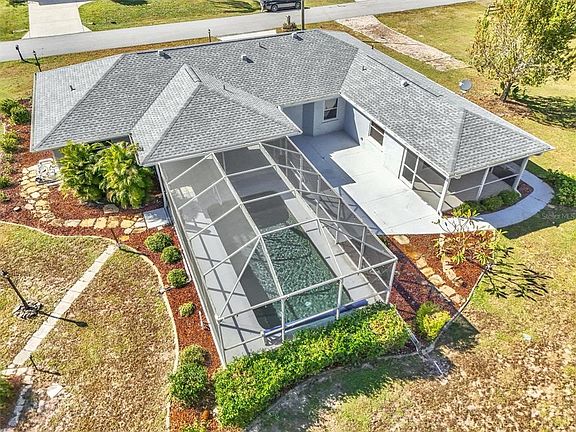 Exceptional opportunity to own a spacious single-family pool home situated on three lots with freshwater canal frontage. This well-maintained residence offers Split floor plan, four bedrooms, three full bathrooms, and a two-car garage, providing both functionality and comfort. The home features an open and inviting floor plan with abundant natural light throughout. The main living area flows seamlessly into the Living/ dining and kitchen spaces, creating an ideal setting for everyday living and entertaining. The kitchen features plenty of wooden cabinets, spacious countertops, and an eat-in area for relaxed meals. The fourth bedroom was added as an in-law suite and is currently being utilized as a den. It includes its own private bathroom, closet, and lanai overlooking the pool and canal. This provides flexibility for guests, multi-generational living, or a private office space. Enjoy outdoor living at its finest with a screened-in pool area overlooking the tranquil freshwater canal. The property boasts mature landscaping and a concrete pad perfect for a firepit, additional seating, or sunbathing. The expansive triple lot offers plenty of space for recreation, gardening, all your toys or future expansion. SimpliSafe Security system and hurricane shutter This home combines comfort, privacy, and outdoor living in a peaceful setting. Spacious 4-bedroom, 3-bath home has hurricane shutter, SimpliSafe Security system, two septic tanks an overhead plumbing. Recent updates include a new roof and gutters (December 2022), plus a new garage door, (November 2023) new air conditioner, and ductwork Experience the best of the Florida lifestyle — schedule your private showing today!
