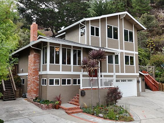 One-of-a-kind home with private park-like backyard oasis w/lush, layered landscaping, rock garden walls, and private paths that encourage a relaxed and natural haven. Highlighting the entry to the property is a decorative private driveway enhancing the desirability of additional privacy and parking. Natural and warm wood flooring and trim create a classic and inviting atmosphere in the home providing timeless elegance to complement various design styles from traditional to modern. Two primary bedroom suites w/the ultimate luxury suite components to include cathedral ceilings w/open wood beams, large picture windows to enhance the views of nature, walk-in closets, sitting area, and features a separate shower and soaking tub, dual vanities, and private balcony. The remodeled kitchen overlooks the backyard oasis w/a deck, flat grass yard, hot tub, and lush park-like gardens where pathways lead you to a variety of indigenous plants, succulents, flowers, fruit trees, and sitting areas. Downstairs entertainment space plumbed for small kit/wet bar. Well maintained + remodeled throughout the years with double paned windows, patio doors, new roofing, remodeled kitchen + 4 bathrooms, extra garage partially enclosed w/bonus space for office/artist's area. Your private sanctuary awaits.