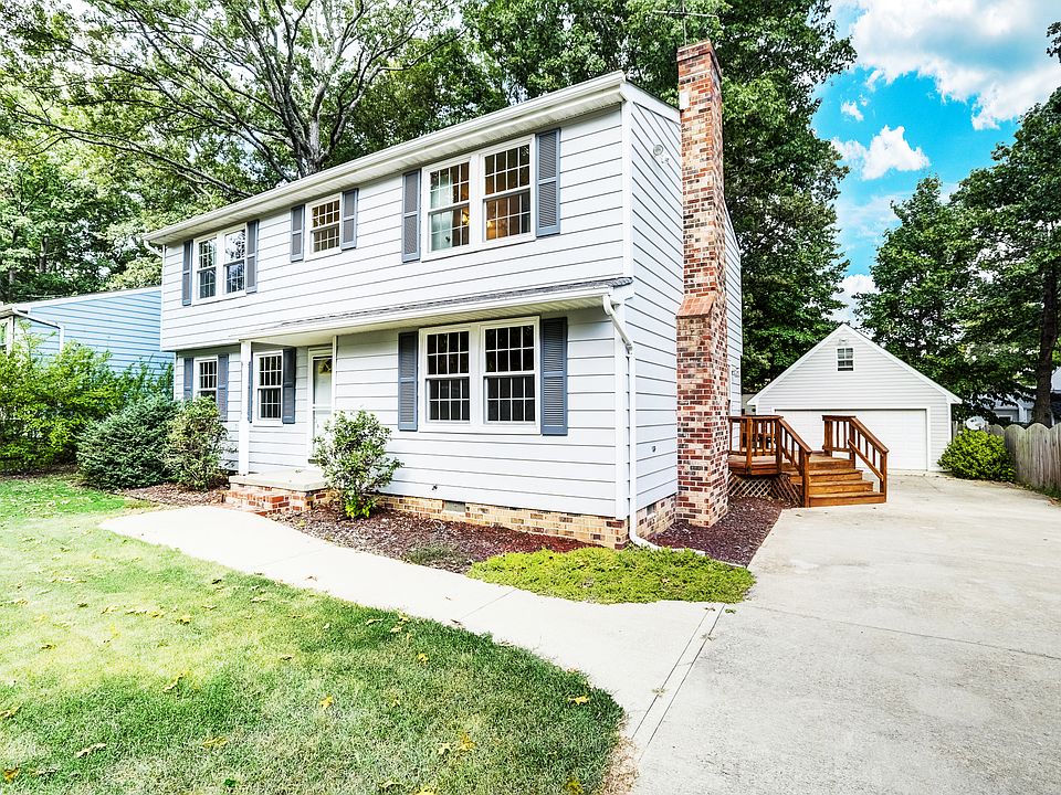 Newly remodeled 4 Bedroom, 2.5 Bath home in Settlers Landing. Large kitchen with eat in area, new granite counters and new stainless steel appliances. Hardwood throughout formal rooms and new carpeting upstairs with tiled foyer and bathrooms. Family room with brick FP. Large rear deck and fenced rear yard. Newer two car detached garage with pull down access to large storage area. New paint inside and out. Low maintenance windows and siding. Outdoor storage shed. Great schools and quiet cul-de-sac.