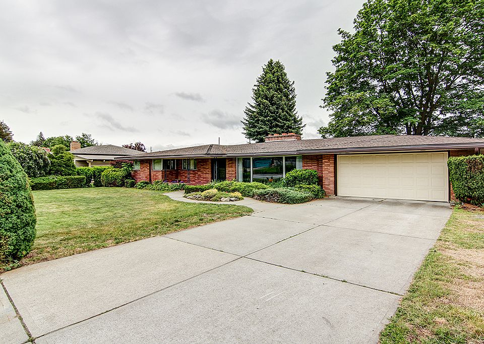 Charming Spokane Valley vintage 5bdrm/3bthrm brick rancher with a 2+ car garage. Natural light from the great windows and skylights flatters lovely wood-beamed ceilings. Cozy wood burning fireplace in the living room and gas fireplace in the dining area. Outside, in the very private backyard you can see mature landscaping, including a whale of a maple tree, and a pond next to the covered patio. In the basement you'll find a large rec room. Bthrm in bsmt "as-is", incomplete with shower/ bath but ready for.