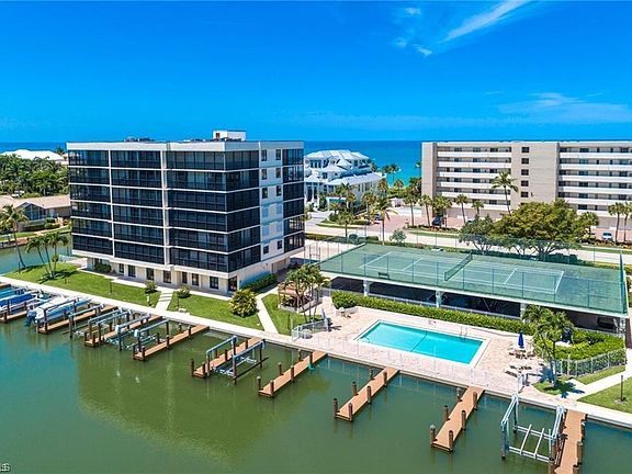 A Boaters Dream opportunity! Top-Floor Penthouse Condo with Sweeping Bay, Gulf & Skyline Views. One of a kind Boat dock (with dual jet ski floating dock) and cabana available to purchase with this condo only. Experience the best of coastal living in this beautifully updated top-floor residence at Vanderbilt Bay. From the moment you step inside, you’ll be captivated by sweeping bay and skyline views, with the Gulf of Mexico visible right from your front door. This move-in ready condo offers an open kitchen and spacious great room, tastefully finished with tile flooring throughout. Seven panels of floor-to-ceiling impact sliding glass doors flood the home with natural light and open to a rare 35-foot-wide lanai—perfect for entertaining or soaking in the views. Additional highlights include a separate in-unit laundry room, a whole-house water purifier, and newer AC and hot water heater. The home is being sold turnkey and includes a covered parking space. Vanderbilt Bay residents enjoy a private, gated beach walk directly across the street, providing easy access to Vanderbilt Beach, Wiggins State Park, LaPlaya, and nearby dining options. High-speed fiber optics and a full building renovation—bringing everything to current hurricane standards—ensure comfort and peace of mind. For the boating enthusiast, the seller is also offering a brand new boat dock accommodating up to a 35-foot/16,000 lb. vessel ($165,000), and a fully renovated private cabana with a full bathroom and Kitchenette ($165,000)—or both together for $300,000. With quick Gulf access and unparalleled views, this property represents a unique opportunity on Gulf Shore Drive. Don’t miss your chance to own this exceptional coastal retreat!