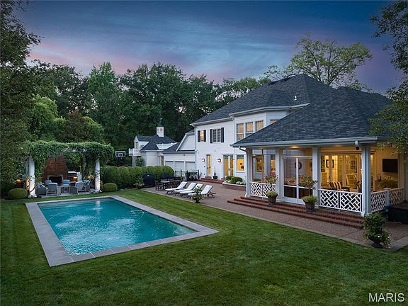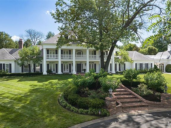 Exceeding every expectation. This Frontenac estate, situated on a gated, private cul-de-sac, checks every box both inside and out. A Johnson-built executive custom home, with 5 bedrooms, 7 baths and over 7,600 square feet of living space in the main house, plus an additional detached two-story guest house. The grounds are meticulous and a statement in perfection, featuring resort quality fountained pool, spa, artfully designed landscaping with uplighting, vine enveloped pergola with brick fireplace, and a world class heated screened veranda with accordion glass doors creating the ultimate indoor/outdoor living space. The interiors seamlessly blend refined and casual living spaces, and incorporates modern convenience of a Lutron Radio RA Lighting control. A fully remodeled and expanded chefs kitchen was thoughtfully designed to be the anchor of the home. Double islands, expansive windows allow sweeping views of pool and grounds, top tier appliances and abundant storage. The Primary suite is a retreat, with coffered ceiling, light filled spa-inspired bath with ventana marble, dual organized closets, and oversized shower. 2nd level hosts 4 generously sized bedroom suites (currently 2 suites are combined.) Lower level offers recreation rooms, home theater and temperature controlled wine storage. The Guest House provides abundant living space, a spacious bedroom suite, wet bar and wine chiller. Garage is 4 car and oversized. Elite security with controlled access and cameras.