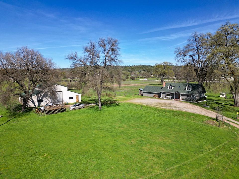 Introducing a captivating farmhouse retreat nestled on 17+ sprawling, pastoral acres in the serene enclave of Penn Valley, boasting an enchanting year-round creek, a seasonal pond, & offering a picturesque backdrop to country living at its finest. Step inside the remodeled 4-bedroom, 2-bathroom home, where modern comforts harmonize with rustic charm. The heart of the home, a stunning kitchen featuring granite countertops, a greenhouse window, and ample cabinetry, invites culinary inspiration. The primary bedroom, on the main level, boasts a cozy sitting room and a generous walk-in closet. Experience the essence of outdoor living on the expansive composite deck, overlooking lush pastures, shaded by majestic Oaks, offering breathtaking sunrises. A 2400-square-foot barn/shop, complemented by a large, fenced garden teeming with fruit. The property is fenced and cross-fenced, ideal for horses and livestock with a sand arena. Recent upgrades include a new roof, windows, updated kitchen & bathrooms, this residence exudes a welcoming ambiance and promises a coveted country lifestyle. Ideal solar exposure and easily irrigated pastures make this haven tailor-made for the discerning farmer. The barn, features four stalls, a concrete floor and endless possibilities. Your dream life awaits!