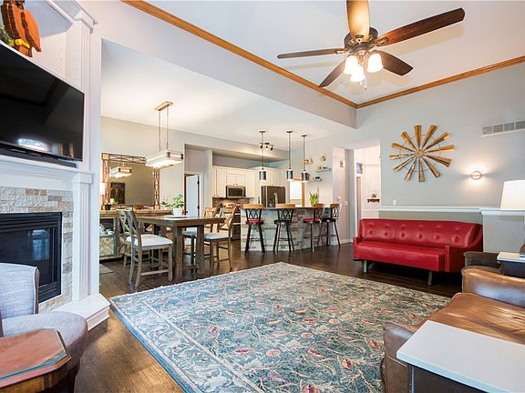 No open house as we have accepted an offer.....This updated, 3 car attached garage, end unit townhome is a gem. Updated and with all appliances including washer and dryer. Main floor has a primary bed with a full bath, office/bedroom, open floor plan, laundry ,kitchen with smudge proof appliances, 3/4 bath, dining area, living room with big fireplace, TV above the fireplace (also stay)s. Lower level has big family room, full bath, bedroom with egress and a big non conforming bedroom, lots of storage. Mature trees, deck, and the roof and siding was done within the past 5 years.