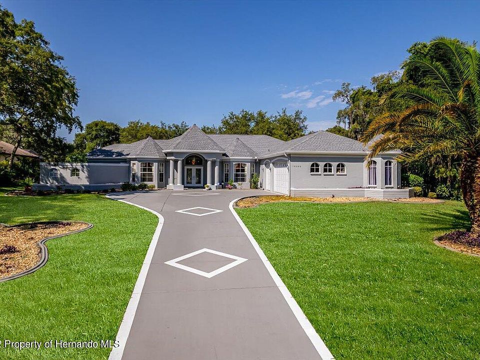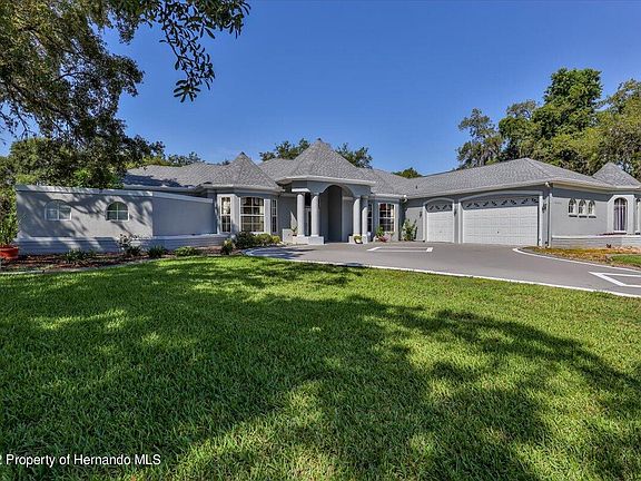 Contact The Oakland Team of RE/MAX Alliance Group for a Personal Showing at 352-597-7654. ELEGANT & BEAUTIFUL PALMWOOD CUSTOM HOME in the Sought Out Neighborhood of Woodland Waters. AFFORDABLE LUXURY 3695 SF of Living Area / 5186 SF Under Roof + A Verandah with a Balcony Perfect for Entertaining. This One Owner Home Sits on a 1.38 Acre Lot that is On Tooke LAKE.. Very Pretty! PLENTY of Room for a Pool or Other Outdoor Living Space that you May Desire. Front Pillared Double Etched Doors with Transom Window Entry takes you to the Foyer & Formal Living Room with Chandelier, Volume Trey Ceiling & French Doors out to the Verandah. To the Right is the Formal Dining Room with Another Chandelier, Trey Ceiling & Bay Windows. Off of the Dining & Living Room is the Gourmet Kitchen... GRANITE Counters, Wood Cabinets, Glass Tiled Backsplash, Large Island, Breakfast Nook, Butler's Pantry + Large Walk in Pantry. Plenty of Cabinets & Counter Space for the Chef in the Family! Right off of the Kitchen is the Family Room.. Light & Bright with a Fireplace, Transom Windows + Pocket Sliding Glass Doors out to the Verandah. TWO MASTER SUITES. Perfect for Mother/Daughter, His & Her Suites OR an In-Law Suite. Both are VERY Spacious & Are Split for Privacy. Master Bedroom 1 has an Aquarium Window, Transom Window around the Bed, Huge Walk In Closet, Soaking Jetted Garden Tub, Huge Walk In Shower & Access to the Side Courtyard with Custom Etched Glass Doors. Room Next to this Bedroom could be a 4th Bedroom with Adding a Closet or a Nursery, Den, Office, etc. Master Bedroom 2 offers a Large Walk In Closet, Trey Ceiling, Soaking Garden Tub with Beautiful Etched Glass Windows & Snail Walk in Shower. 3rd Bathroom has a Walk in Shower, Lighted Water Faucet & Access to the Outside Verandah perfect for Guests or for a Future Pool. SPACIOUS Oversized 3 Car Garage, 2021 Three Dimensional Roof, Newly Painted Exterior, 2019 HVAC & Other Air Handler is Also Newer. This Stunning Home is located Near the Waters of the Famous Weeki Wachee River & the Quaint Area of Hernando Beach.. So you are not far from Fun in the Sun + Near all of the Amenities needed like Grocery Stores, Hospital, Theater, Restaurants, etc.. And Yet the Neighborhood is Quite & Tucked in & Surrounded by Natural Beauty. Come See Your New Home!