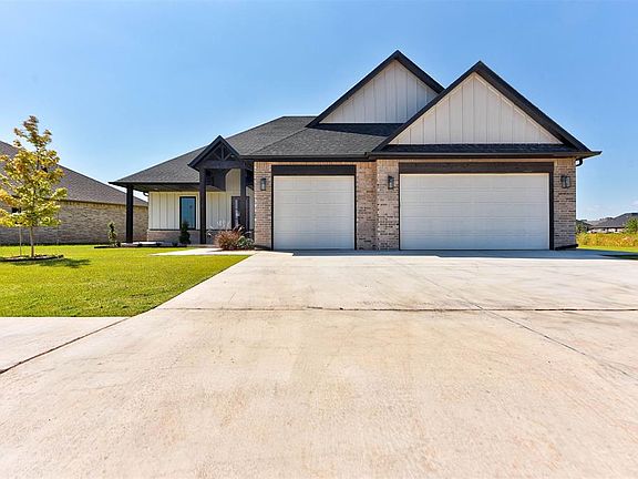 UP TO $10K TOWARD INTEREST RATE BUY DOWN, CLOSING COSTS W/PREFERRED LENDER! Builder can easily add closet to office to create your 4th bedroom! Energy efficiency is top-notch here with SPRAY FOAMED INSULATION, TANKLESS HOT WATER HEATER, energy-efficient windows, 90% upgraded furnace. OVERSIZED GARAGE is upgraded--8-FT DOORS with 10-FT CEILINGS (Get that Larger Truck or SUV in there with ease) plus a side door for trash-can access. Completed in 2025, the home boasts 4 bed/2.1 bath and is located within the highly sought-after MUSTANG SCHOOL DISTRICT! Packed with high-end, energy-efficient upgrades such as fully foamed insulation (provides up to a 40% reduction in energy use, reduces heating/cooling costs, reduces outside noise & increases home comfort all year long) and double-pane windows, this home has it all! As you enter the home, you’re greeted by the inviting living room w/canned lighting, raised ceiling, beautiful beams, a custom fireplace, & a contemporary ceiling fan. In the kitchen, prepare to be wowed by the custom island, Quartz countertops, undermount lighting, vent hood, gas cook top, tons of cabinet space, and a custom tile backsplash. The dining area is equally impressive, w/an accent wall. Other features include: architectural shingles on roof, upgraded lighting, custom tile, sprinklers, alarm system, shut off valves under every sink for convenience, Quartz countertops throughout, tankless hot water heater, & an upgraded furnace (90%). The primary bedroom is bright & airy with a large window and leads to your luxurious primary bathroom with a soaking tub & custom walk-in shower. The primary closet was strategically constructed with built-in storage & hanging space. The laundry area is a showstopper with Quartz countertops, a sink, & tons of storage. Finally, outside there’s a covered front patio and back porch, with custom lighting that allows you to entertain anytime! Every detail has been crafted to give you the best living experience possible.