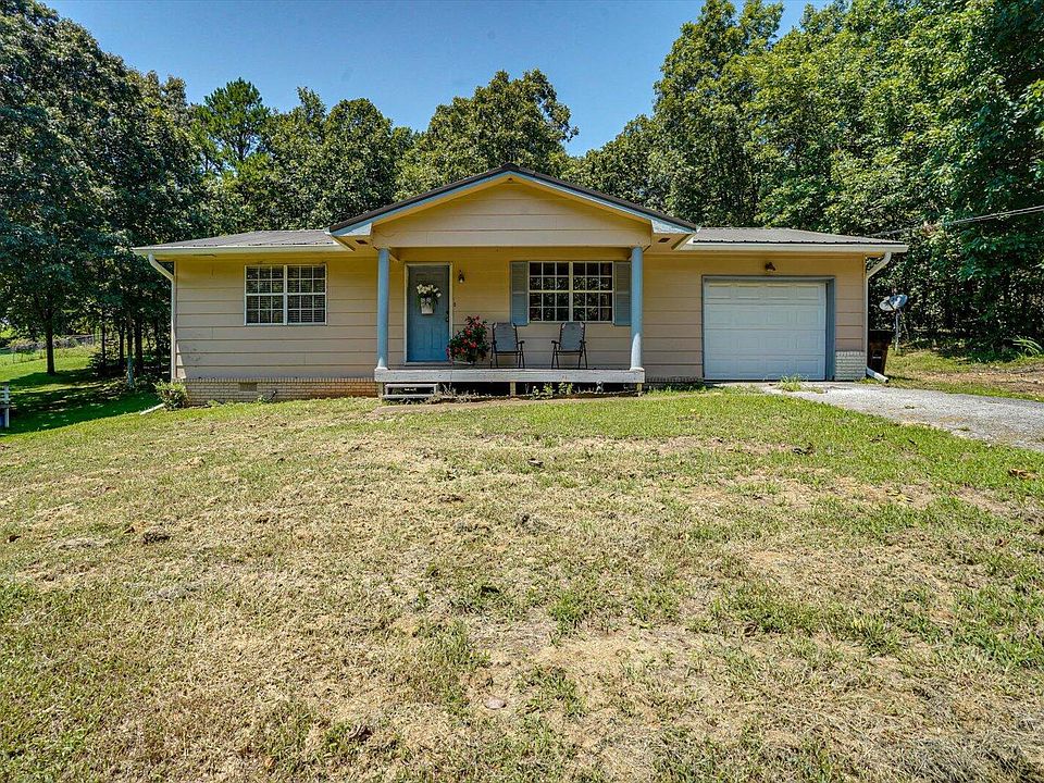 Cozy 2 bedroom 1 bath rancher with one car garage priced to sell! This home features a large living room and primary bedroom with laminate hardwood flooring. You will also find a generous size eat in kitchen with access to a back patio. In 2023 seller had a new HVAC installed and replaced the septic lines. The crawl space has had repair and new support added by a licensed company specializing in crawl spaces in 2023. There is a rocking chair covered front porch to relax on and the lot size is approximately a half acre. County only taxes. Home is being Sold ''As Is''.