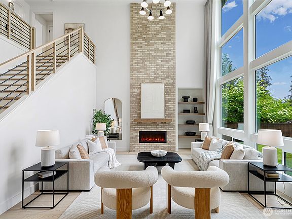 Stunning Murray Franklyn home in a quiet, no-thru-traffic neighborhood within the top-rated Lake Washington School District. Thoughtfully designed with soaring ceilings in the family room and an open staircase that adds volume and light. Main floor features a private ensuite with its own patio, hardwoods throughout the den, dining, and family rooms, and a beautifully finished kitchen with quartz counters, tile backsplash, and stainless appliances. Two patios, including a covered one with fireplace. Upstairs offers a bonus room, laundry, and a luxurious primary suite. No HOA. Pre-inspected.