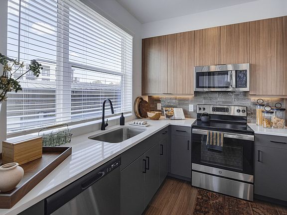 Stainless steel appliancesQuartz countertopsWalk-in closets