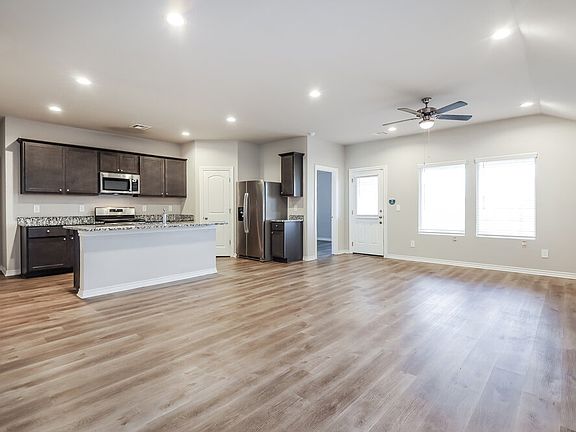 Please note, our homes are available on a first-come, first-serve basis and are not reserved until the lease is signed by all applicants and security deposits are collected. This home features Progress Smart Home - Progress Residential's smart home app, which allows you to control the home securely from any of your devices. Apply and get approved to lease this home by January 7, 2025, and receive $1,500 toward move in fees plus one month free on your first full month's rent. Want to tour on your own? Click the "Self Tour" button on this home's RentProgress. You'll find three bedrooms and two baths in this 1,501-square-foot Mustang rental home. A cavernous space with attractive vinyl plank flooring holds the living room and the kitchen. Entertain guests beneath the living room's ceiling fan and flush mounted ceiling lights, or step outside its door to the backyard. The kitchen makes cooking a breeze thanks to its large pantry, workspace, and stainless steel appliances. The long island with its beautiful granite counter bears a sink with a breakfast bar for casual meals. The primary bedroom is large enough for a suite of king-sized furniture, and its en suite bathroom gives you both privacy with its dual sink vanity and two large closets. Apply for this home now.