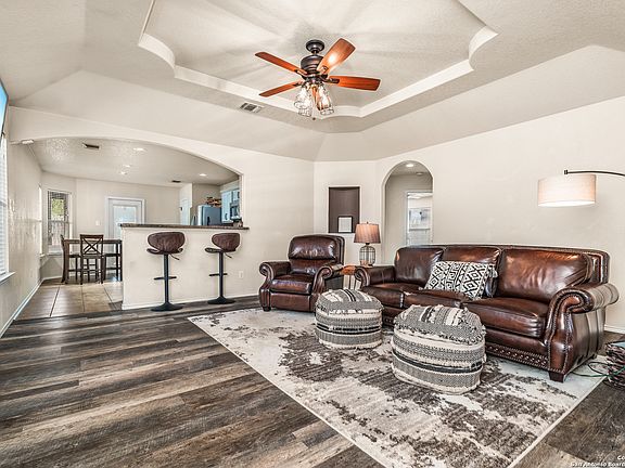 Nestled in the heart of the tranquil and sought-after community of Helotes, this all-brick Newleaf home is ready for its new owners. This home features 3 bedrooms and 2 full baths with a 2 car garage. Laminate wood flooring throughout and ceramic tile in the wet areas. Paid off solar panels that produce a negative electric bill. No back neighbors for extra peace and privacy to enjoy the spacious back yard and covered patio.