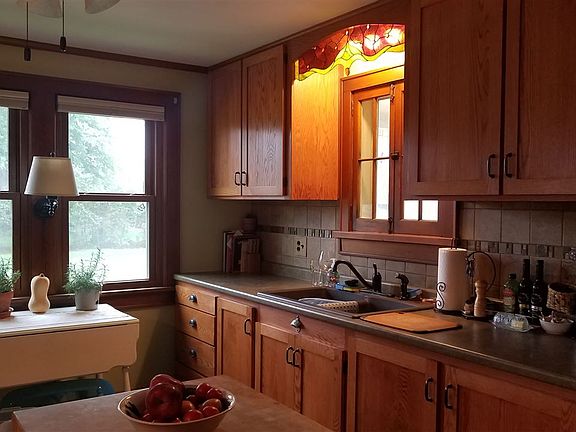 This was the Benson Corner Creamery back in the day! The current seller has owned for 23 years and is motivated to sell this unique property. The main level is actually the upper level and has been remodeled with new drywall, doors, light fixtures but kept some of the older features such as the hardwood flooring. Beautiful crafted stained glass accents in the kitchen, updated flooring, stainless steel appliances. Main utility room is larger, leads out to open porch.The basement area is solid stone walls, furnace and central air are years old, with an attached one car garage. Basement is one of the entries with newer double hung windows, a hand crafted entry door, cement floors and was previously used as the man cave. There is a newer 24x30 detached garage and an older detached 2 car garage. 500 gallon LP tank is owned. There is so much to see!
