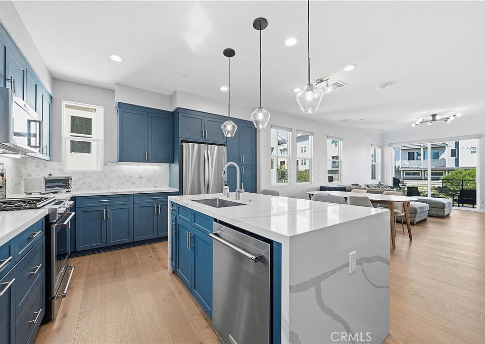 Beautifully upgraded 2 bedroom, 2.5 bathroom light and bright end unit, with quartz waterfall counter tops, home automation including blinds on third story, upgraded engineered wood flooring and Paid Off Solar! Designer interior paint, and elegant glass railings and surround sound that enhance the home’s modern aesthetic. The gourmet kitchen features a dual waterfall-edge quartz countertop, upgraded pull-out drawers, and premium finishes that make it a true showpiece. The downstairs bedroom and full bathroom with direct two car garage access, are ideal for guests or a home office. Upstairs, you’ll find a versatile loft with bonus space off the bedroom, perfect for a playroom, media area, nursery or private retreat. The automated window blinds on the third story offer both convenience and sophistication. Every detail has been thoughtfully designed to exceed model-home quality—this home is truly better than the model in one of San Diego’s most sought-after master-planned communities - 3 Roots. This modern residence offers the perfect blend of luxury, comfort, and energy efficiency. Enjoy resort-style living with community amenities that include sparkling pools, a state-of-the-art gym, parks, and a state of the art community center.