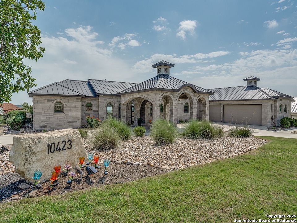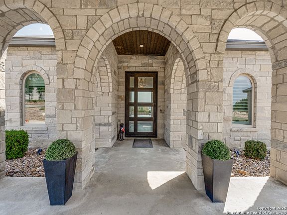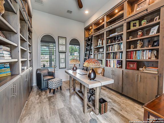 Sprawling one story ranch on a corner lot with breath taking views of San Antonio hill country. Chef's kitchen includes farm sink, large pantry, butler room, large island with quartz countertops, premium appliances: Subzero frig and freezer, Wolf cooktop, Wolf ovens, Cove dishwasher and Michael Edward's cabinetry. The home includes a Bjorn outfitted theater room (equipment included), library with built-in bookcases, and exercise room (or 5th bedroom). The large, master bedroom and ensuite bathroom houses a walk-through shower and soaking tub. Backyard includes a Zar's pool, large deck, built-in BBQ and eating areas. Anderson windows throughout and a porte cochere over the front entrance/drive. Owned water softener included and security system. Many more special features to this "must see" stunning home. Seller has had a home inspection by an independent, licensed inspector, and is willing to share results and seller will provide a home warranty. Home is now vacant and has been freshly painted. In great shape!