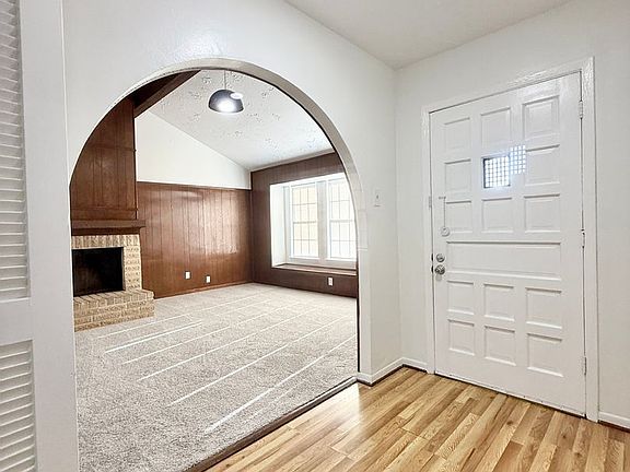 Cozy mock fireplaceElegant courtyardFresh interior paintBamboo wood floorsNew carpetDining comboStudy nook