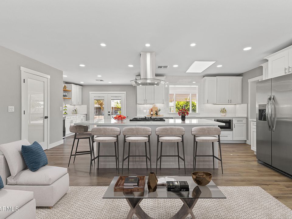 Move-in ready! This home features a chef's kitchen with a 9-ft quartz island, gas range, drawer microwave, dry bar with beverage fridge, and a custom pantry with lighting on every shelf. Soft-close shaker cabinets with beautiful backsplash complete this dream kitchen. Luxury vinyl plank floors flow throughout, with shiplap in the living room and craftsman doors and trim throughout the home adding timeless charm. The bathrooms showcase tiled showers, including a curbless walk-in shower in the master. Fresh interior and exterior paint make this home the perfect blend of style, comfort, and convenience. Seller to purchase 1 yr home warranty for Buyers. Major updates include a new electrical panel, replaced sewer line, and an updated, fully inspected HVAC system. All of this is located in a vibrant 55+ community offering golf, pickleball, tennis, pools, fitness centers, medical facilities, shopping, and dining. This home is truly move-in ready. Everything has been done for you!