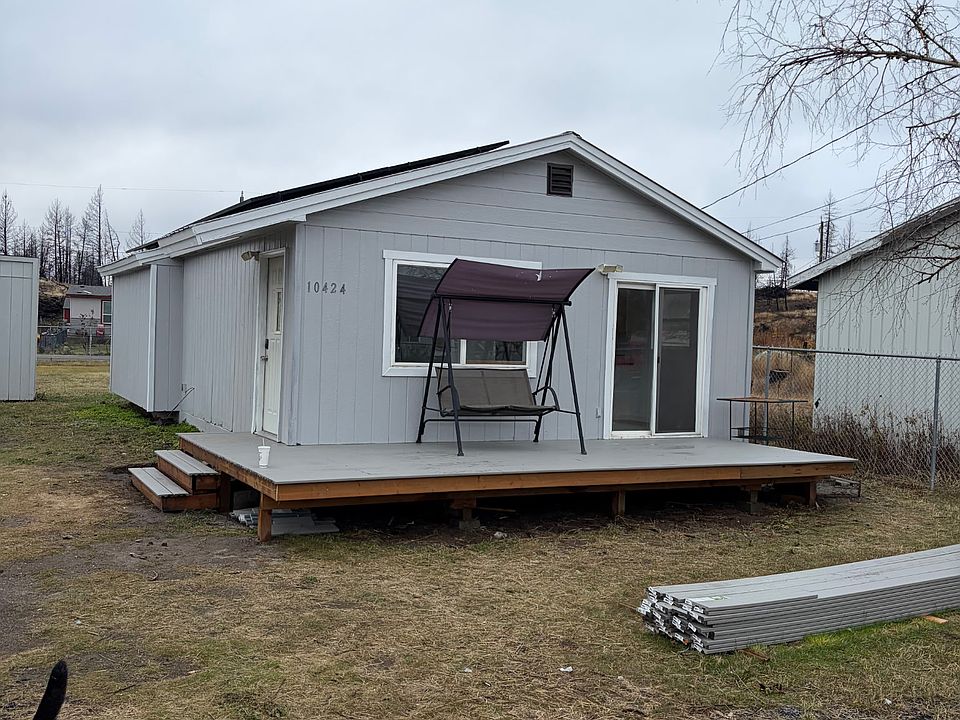 Completely new and renovated home steps from the lakeshore! Two large bedrooms, beautiful living area, and lots of storage. The lot is completely fenced in and has its own parking area and massive shed. You'll be the first to live here since the complete makeover! Complete with a brand new deck facing the lake. Public lake access nearby.