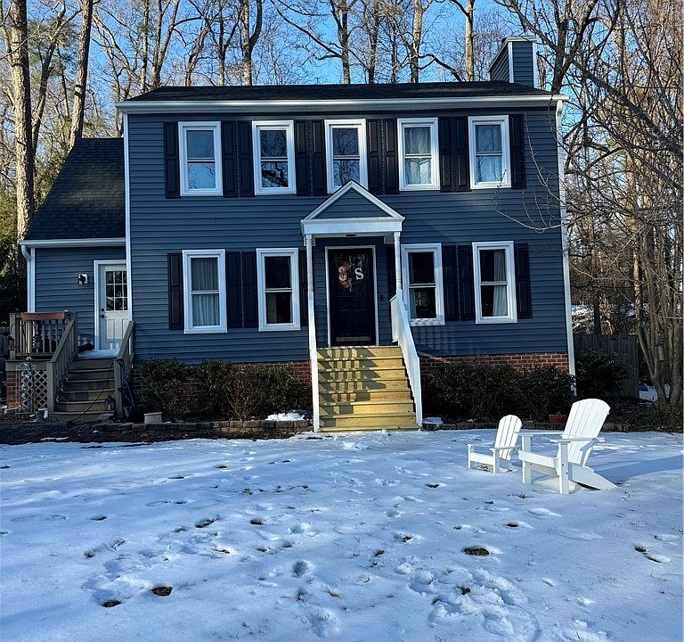 New Roof! New Vinyl Siding! New Windows! This charming 3 bed 2.5 bath has been updated and is ready for its next owner! Enter the foyer and transition to the dining room with hardwood flooring or to the large great room with an elegant wood-burning fireplace. Expand your activities or entertaining to the spacious 2-tiered deck and outdoor area. The eat in kitchen features stainless appliances, double sinks, under-counter lights, pantry, and granite counters. There is a separate entrance to the laundry room and half bath. Head upstairs where you will find 2 cozy bedrooms, perfect for kids or an office space. Continue to the primary suite that features a walk in closet and updated vanity. The private back yard is fenced. This wonderful home is walkable to the community pool, Greenfield ES and Huguenot Park. It just a 5-minute drive from Chesterfield Towne Center and every convenience imaginable. Make your listing appointment today!