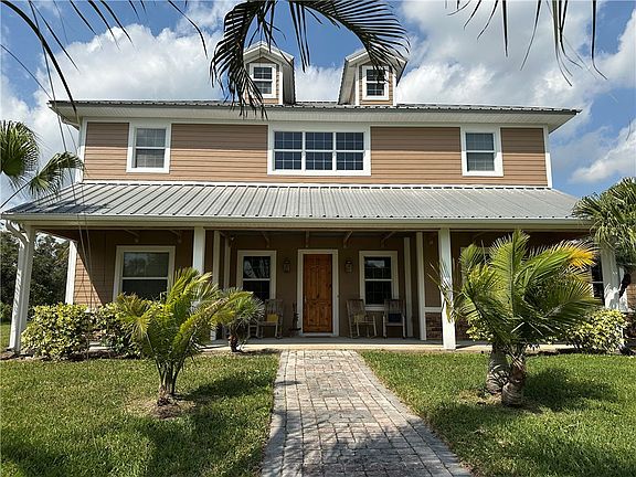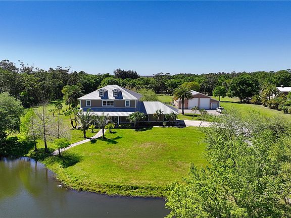Traditional Farmhouse with modern touches on 4.82 acre horse farm and/or agricultural property. Home features 5 beds, 3.5 baths, stained wood floors and ceilings, unique cypress wood staircase, large kitchen, granite counters, stainless steel appliances, enormous master suite, impact windows, CBS w/concrete siding. Plenty of storage in the 3200 sq ft detached garage, 5 rollup doors, half bath and RV hookup. Large enough for wedding venue! room measurements are estimated subject to error.