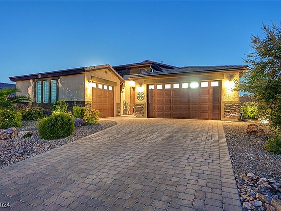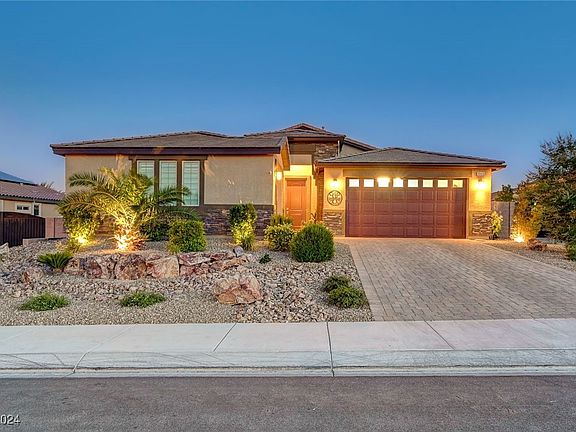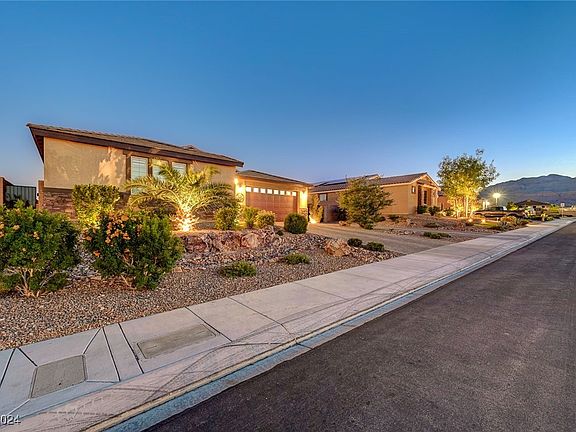 Beautifully designed and highly desirable single story residence~Gated 40’ RV & boat parking area w/full hookups~Kitchen has 44” soft close cabinets & drawers, island, walk in pantry, Professional Series SS appliances enhance the culinary experience~Custom shutters~8' center splitting sliding glass door~Remote controlled Luminette Illusion Power Shades~Primary bedroom has ensuite bathroom, glass enclosed shower, dual sinks, soaking tub&custom walk in closet by California Closets~Tri-zoned Smart home thermostats ensure comfort for every room~Second Primary bedroom has its own A/C thermostat, bathroom, walk-in closet, storage closet & private access to 1 car garage~Builder wired home for smart automation, integration&surround sound~Laundry room includes sink, cabinets, washer&dryer~Outdoor kitchen has a built in BBQ, fridge, beverage cooler, & granite c/tops~Elevated pavillion & landscape lights create an ambiance~Located 10 mins from DT Summerlin, Red Rock Casino, LV Ball park~Must see~