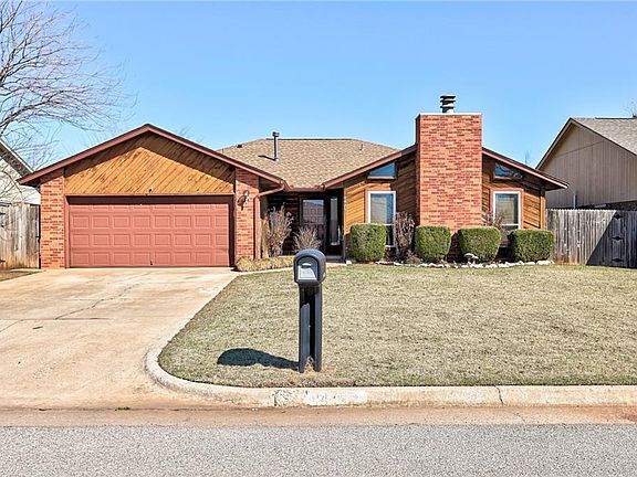 Come get it before it goes! Beautiful home in Westbury North! Mustang Schools! Brand new roof. Brand new carpet and paint throughout! Newer flooring in living, hall, and dining room! Newer windows! Walking in, you cant help but notice all of the charm this home has to offer! Living room features vaulted ceiling with wooden beams, cedar shiplap wall, and massive fireplace. Partial open concept allows the chef of the home to stay connected! Granite countertops in the kitchen, and cute breakfast bar! Great size dining room! Home also features large bedrooms. Large master suite with more shiplap! Enjoy entertaining during the summer with your covered back patio complete with a pool and deck. Liner and pump replaced last summer! This house would be great for the first time home buyer or maybe anyone trying to downsize. Great neighborhood! All you need to do is come in and make it your own!! **Agents - See Realtor Remarks**