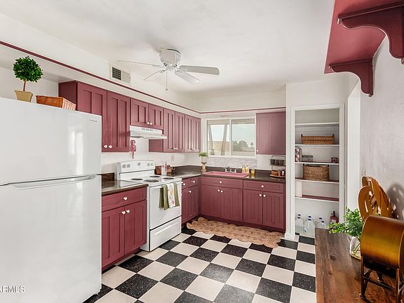 Charming home on large 11,715 Sq Ft lot with 2 car garage and 2 RV gates. Brand new roof 2 mo. old, some updated windows, AC approx. 10 years old. APS utility owned solar with monthly credit benefit. Large kitchen with open area to living room, bonus room or dedicated dining space. Chocolate granite countertops, breakfast bar, burnt red unique red cabinetry. Walk in showers in both bathrooms. Separate large laundry room/golf cart garage with plenty of storage. Priced to sell. Home will be sold in AS IS condition. Seller is not willing to do repairs. The APS Solar Communities program offers limited- and moderate-income customers in Arizona the opportunity to receive solar energy benefits, including a monthly bill credit, at no cost for installation. This initiative allows qualifying participants to have solar panels installed on their homes at no cost, while receiving financial benefits through bill credits. Pine trees offer lots of privacy in the front yard. Cul-de-sac lot conveniently located at the edge of Sun City, which is close to Park West shopping, dining including Flamingo's, Grimaldi's, The Vig, Pita Jungle, Wildflower and more! Harkins movie theatres and Desert Diamond Casino & major highways nearby, Sun City recreation centers, pools, and golf courses all close. Must see this one to appreciate for its uniqueness!