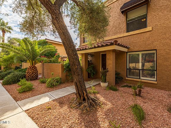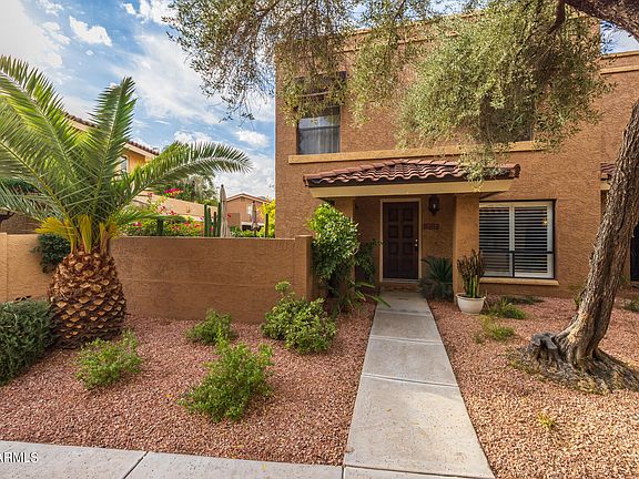 Welcome home to Pointe Tapatio, a beautiful gem of a neighborhood in a central, convenient location. This two bedroom, 1.5 bath townhome was completely remodeled two years ago. A light and bright white kitchen with stainless steel appliances, quartz countertops, breakfast bar, and soft-close cabinet drawers welcomes you. Move-in ready. The living space is open and inviting with sliding glass doors to the outside private courtyard with space for a dining area, seating area and outdoor fire. Nearly $10K invested in a professionally designed outdoor garden drip irrigation system with tropical and desert landscaping. A pass-through window from the kitchen to your outdoor oasis. Spacious bedrooms with one walk-in closet and a second closet in the primary bedroom. Gorgeous mountain views from both sides of the home. Timeless wood-like tile flooring in the kitchen, living room and bathrooms. Four outdoor community pools and hot tubs. Social events for Pointe Tapatio residents and hiking at beautiful North Mountain just a short walk away from your front door! The location of this home is ideal, with a short two-minute walk to a heated pool and hot tub lined with palm trees. All new custom window treatments including shutters, remote-controlled custom blinds on the sliding glass doors, and top-down, bottom-up room-darkening cellular shades in the bedrooms and hallway to maximize the mountain views. Plenty of storage throughout the home and an extra outdoor storage room near the parking. A low-maintenance home for all ages, a small family, or a lock and leave residence for snowbirds. A short drive to the PHX airport, Paradise Valley, Scottsdale, Central or downtown Phoenix. Dine at one of the hundreds of nearby restaurants, golf, or attend a sporting event or concert without needing to drive on the freeway! The association's dues include water and sewer, trash removal, cable tv package including premium channels, outside maintenance of the home, and the many community amenities. Lots of green space and a walkable neighborhood with parks and sidewalks.