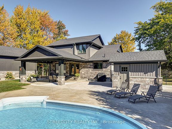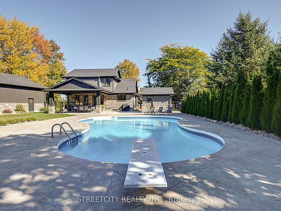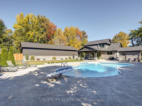 Welcome to the ultimate blend of luxury, comfort, and functionality. This exceptional 4-bedroom, 4-bathroom executive home was completely reimagined in 2021 with high-end finishesand custom upgrades throughout on over half an acre & features a 35 x 70 x 12.6 heated dreamshop that sets it apart from anything else on the market.Step inside and be captivated by the elegant main floor, where a gourmet kitchen equipped withGE Café appliances, stone countertops, and custom cabinetry flows seamlessly into the formaldining room and dual living spaces. Fireplaces, tray ceilings, crown moulding, & handcrafted hardwood staircases add timeless character at every turn. A stylish mudroom with laundry connects to the 2-car garage, and a chic 2-piece powder room completes the main level. Upstairs, discover three generously sized bedrooms including a stunning primary retreat, complete with a full wall of custom closets and a spa-inspired ensuite featuring a walk-in shower & double vanities. The lower level is finished to the highest standard, offering a spacious family room with rich hardwood floors, an office space, fourth bedroom, & a luxurious 4-piece bathroom perfect for guests or teens. Outdoors, your private oasis awaits. Entertain by the inground pool, surrounded by stamped concrete, a covered gazebo, a firepit area, and a dedicated pool house/change room with a rough-in for an outdoor bathroom. The fully fenced backyard offers green space for kids and pets to play in total privacy and security. And now the crown jewel: a mechanic or tradespersons dream workshop. This luxurious, oversized shop boasts in-floor radiant heat, a two-piece bathroom, 200 amp service, 240Vwelding outlets, and is hoist-ready with the proper footings in place. With two 13 x 10 front overhead doors and a 16 x 10 rear door, there's ample space for commercial vehicles or RV. This is more than a home it's a lifestyle property that combines luxury living with unmatched functionality.